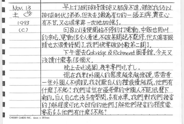 以下是30年前的今天(1993年11月13日)當時16歲的我所親筆寫下的日記: