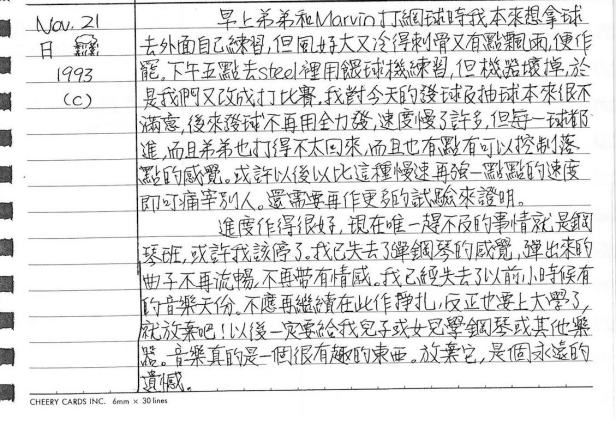 以下是30年前的今天(1993年11月21日)當時16歲的我所親筆寫下的日記: