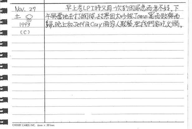 以下是30年前的今天(1993年11月27日)當時16歲的我所親筆寫下的日記: