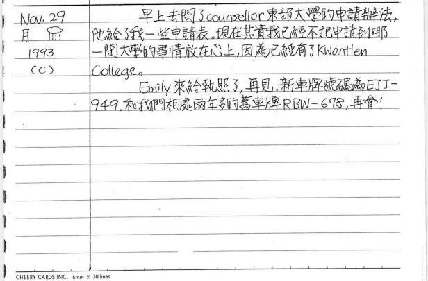 以下是30年前的今天(1993年11月29日)當時16歲的我所親筆寫下的日記: