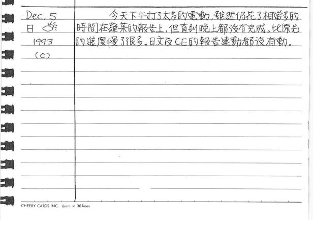 以下是30年前的今天(1993年12月5日)當時16歲的我所親筆寫下的日記: