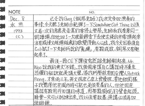 以下是30年前的今天(1993年12月8日)當時16歲的我所親筆寫下的日記: