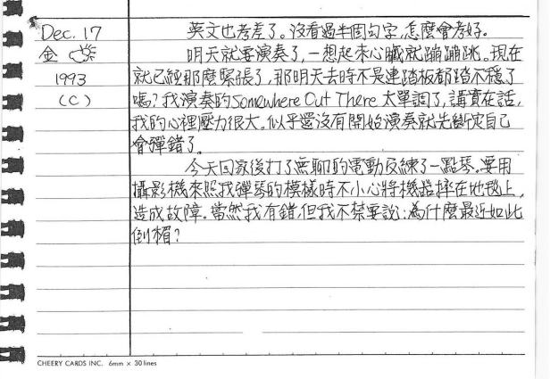 以下是30年前的今天(1993年12月17日)當時17歲的我所親筆寫下的日記: