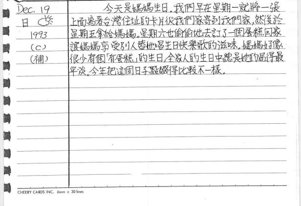 以下是30年前的今天(1993年12月19日)當時17歲的我所親筆寫下的日記: