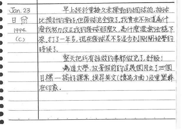 以下是30年前的今天(1994年1月23日)當時17歲的我所親筆寫下的日記: