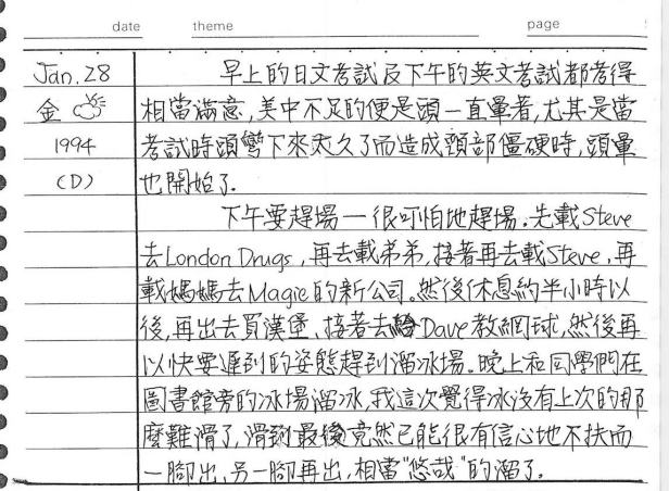 以下是30年前的今天(1994年1月28日)當時17歲的我所親筆寫下的日記: