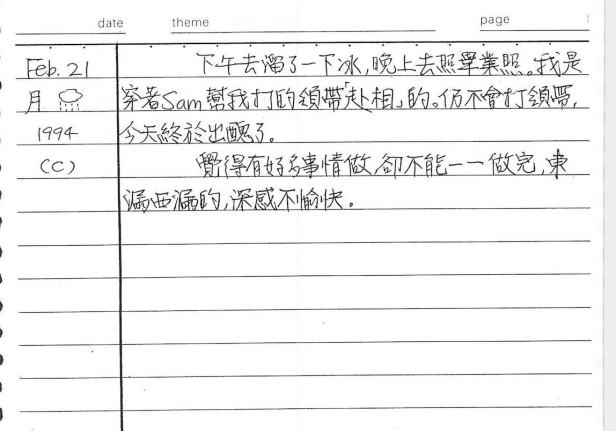 以下是30年前的今天(1994年2月21日)當時17歲的我所親筆寫下的日記: