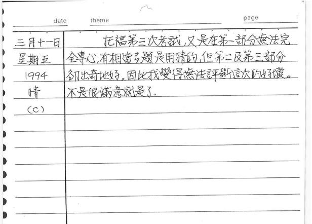 以下是30年前的今天(1994年3月11日)當時17歲的我所親筆寫下的日記: