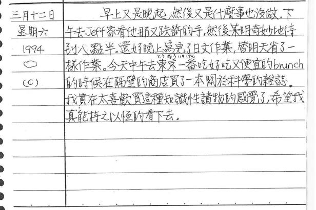 以下是30年前的今天(1994年3月12日)當時17歲的我所親筆寫下的日記:
