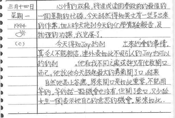 以下是30年前的今天(1994年3月14日)當時17歲的我所親筆寫下的日記: