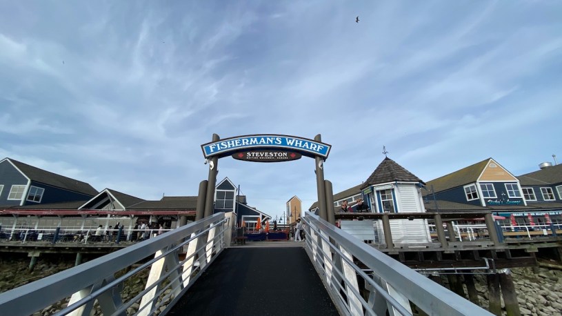 下午開完會再出來Steveston漁港,天氣實在太媚麗,我們走下木棧板的碼頭,和唯一還開著的一艘船買了他們的蝦和花枝,一大堆超大花枝才算我們25元,一袋好重。