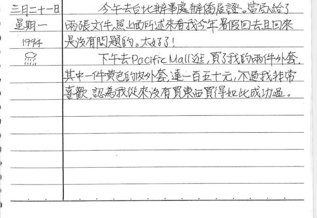 以下是30年前的今天(1994年3月21日)當時17歲的我所親筆寫下的日記: