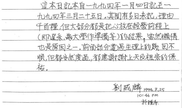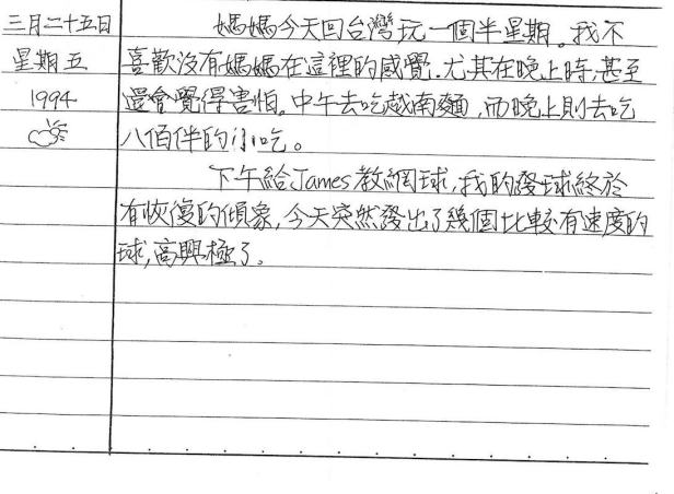 以下是30年前的今天(1994年3月25日)當時17歲的我所親筆寫下的日記: