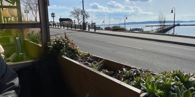 美好晴日帶著鼻水和微發燒到白石鎮,海邊餐館Uli戶外木座聽火車。已盡量省錢而錢是一切的解答
