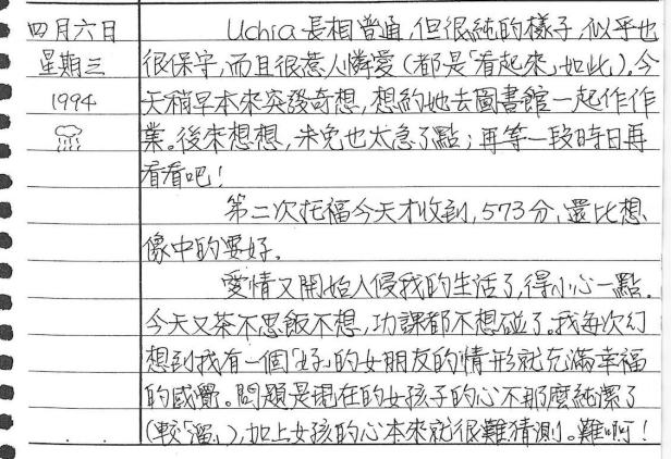 以下是30年前的今天(1994年4月6日)當時17歲的我所親筆寫下的日記: