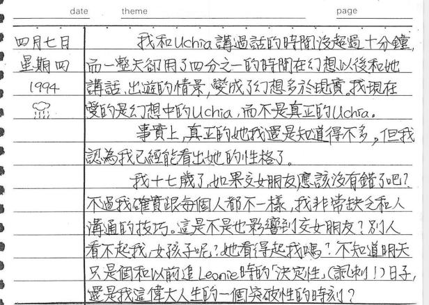 以下是30年前的今天(1994年4月7日)當時17歲的我所親筆寫下的日記: