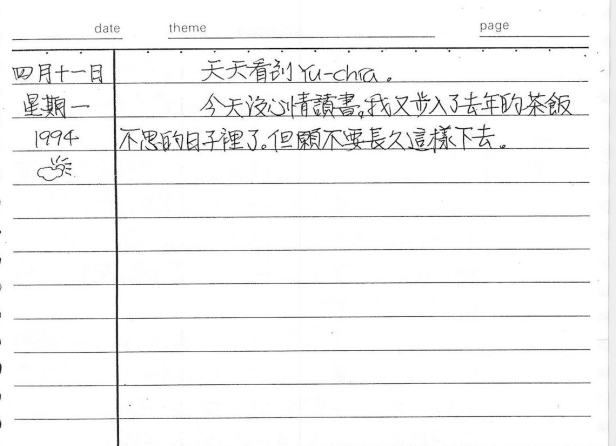 以下是30年前的今天(1994年4月11日)當時17歲的我所親筆寫下的日記: