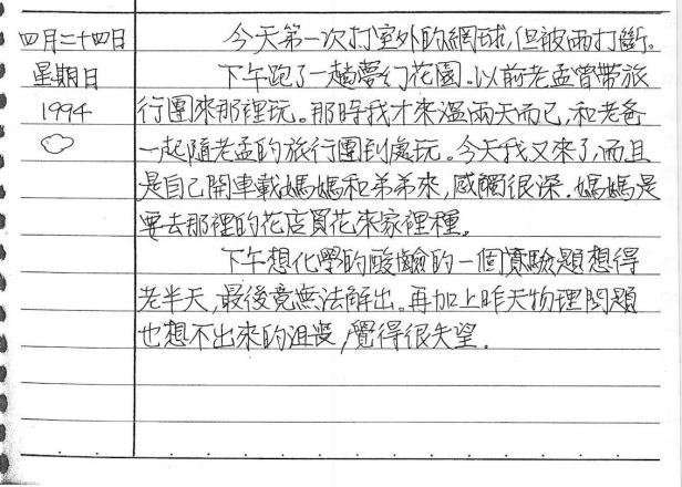 以下是30年前的今天(1994年4月24日)當時17歲的我所親筆寫下的日記: