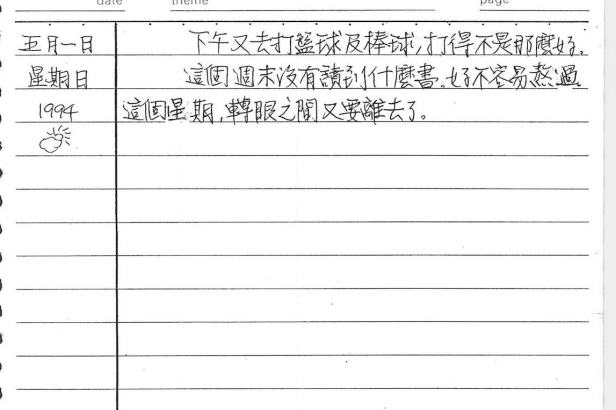 以下是30年前的今天(1994年5月1日)當時17歲的我所親筆寫下的日記: