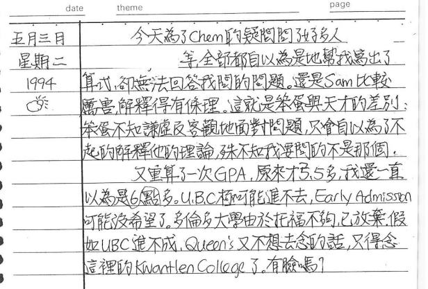 以下是30年前的今天(1994年5月2日)當時17歲的我所親筆寫下的日記: