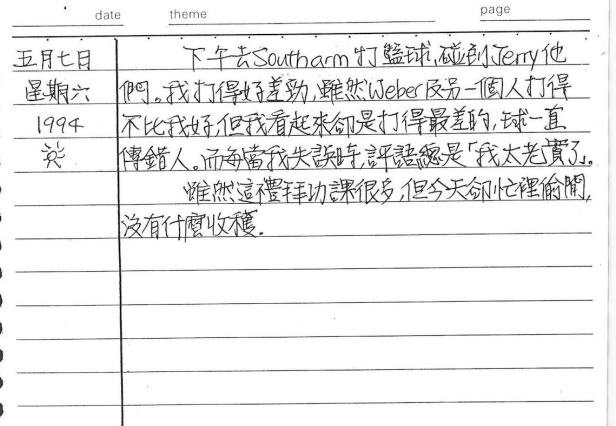 以下是30年前的今天(1994年5月7日)當時17歲的我所親筆寫下的日記: