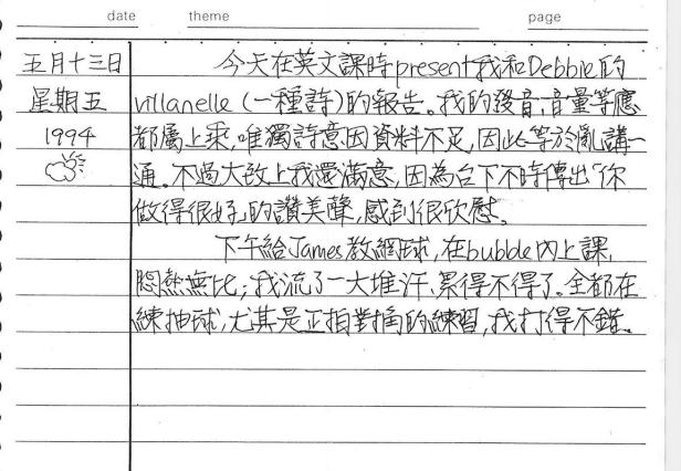 以下是30年前的今天(1994年5月13日)當時17歲的我所親筆寫下的日記: