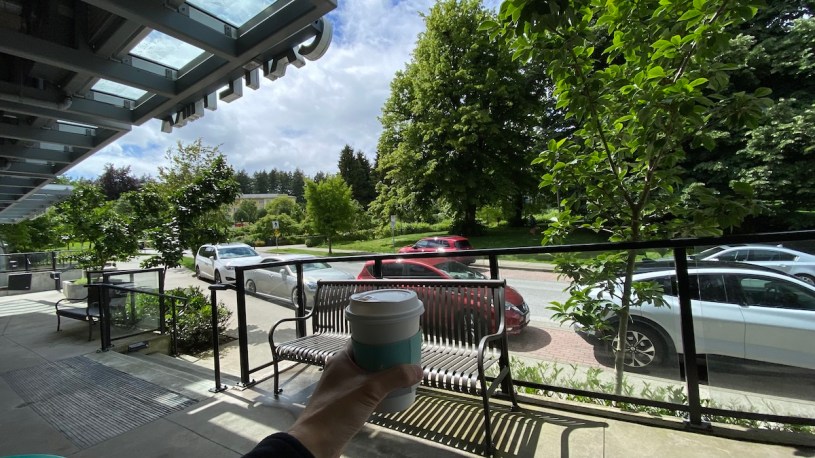 但朋友出現一些危機,我今天都在忙著幫忙解決,心裡是很難過的。和好隊友到一點多終於出門赴離家30分鐘的新的咖啡廳,在New Westminster叫做East Royal的新社區,這裡的四層樓建築和美麗的紅磚、人行道、草地,有一間咖啡廳,我們坐在戶外,看鄰居們拉著狗出來散步,電腦忘了帶,我就從頭到尾都用手機處理,回家路上也在講電話,講一個小時,直到回家,跟孩子們打招呼,在廚房收碗盤,才先離開對話。