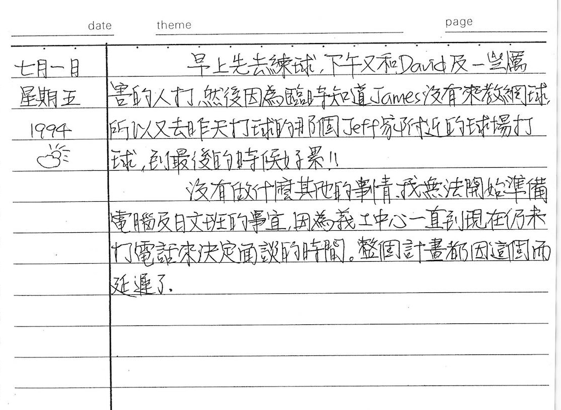 以下是30年前的今天(1994年7月1日)當時17歲的我所親筆寫下的日記: