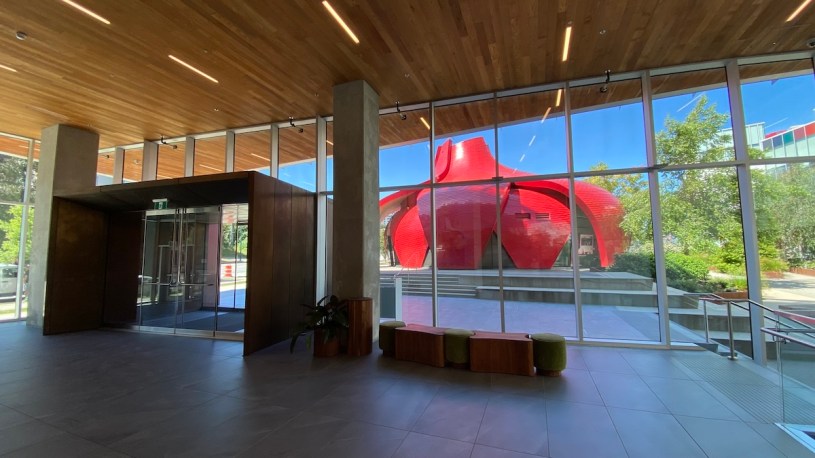 早上我們提早出發,帶了1.5公斤的櫻桃以及兩包曾拌麵給好隊友一個七八十歲的老夫妻同學嘗嘗,我們先到Victoria路上的「Banh Mi Saigon」,中譯西貢麵包店,路口就看到人在外面排隊,我們停到入口唯一合法車位。一條麵包八塊錢,一盒沙拉春捲八塊錢,一杯甘蔗汁也是八塊錢,櫃台裡的越南大媽收錢收得嘴都笑冽了,麵包真的便宜,一口一口咬烤得酥酥的法國麵包,一咬就脆,越南麵包的餡料又是以很多條線的滋味在齒間纏繞,新鮮的甘蔗插進機器打成汁,車開動上了漂亮的西區小山丘,2棟正在賣,我們插不上手。老人家住的是普通雙邊房子,寧靜,拿回菜包與紅豆包子各10顆。因為中午12點今天要去的Emily Carr的Libby美術館才開,我們繞了,還去Whole Foods,買了那個Sap Sucker一瓶只有35大卡的飲料,再回到Nemesis咖啡館、那顆在陽光下鮮豔紅色大蘋果的地下室停好車,大學校樓一人都沒有,也沒有管理員,我和妹妹說:以後上大學就是像在這麼漂亮的大樓,自己享受這麼新的電梯!明亮的大樓裡,一間教室裡默默正在上課,我看過最棒的教室,挑高,非常大的窗,教授在開闊的台上,背後好幾片黑板,對著七個學生上課──這就是教育的資源,有夠豐沛!