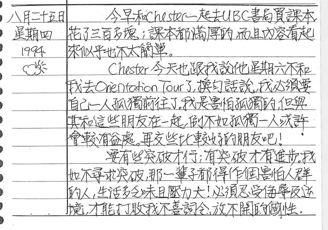 以下是30年前的今天(1994年8月25日)當時17歲的我所親筆寫下的日記: