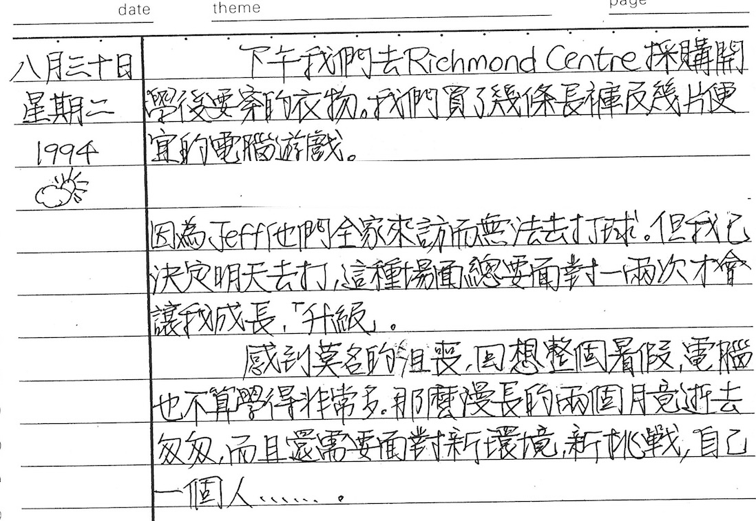 以下是30年前的今天(1994年8月30日)當時17歲的我所親筆寫下的日記: