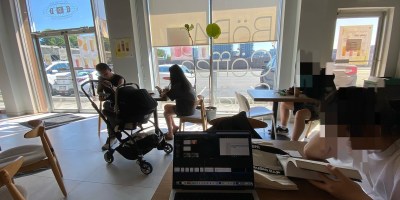兒子讀電子書、女兒讀小說的坐店時光。30年前與今天皆訪UBC。妹妹讀第49章驚豔阿帕梗鋪真久