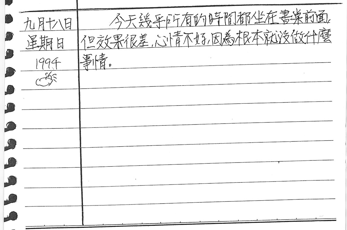 以下是30年前的今天(1994年9月18日)當時17歲的我所親筆寫下的日記: