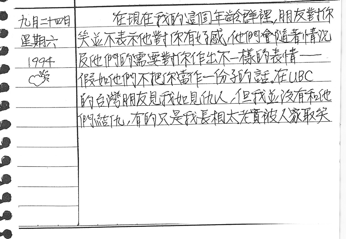 以下是30年前的今天(1994年9月24日)當時17歲的我所親筆寫下的日記: