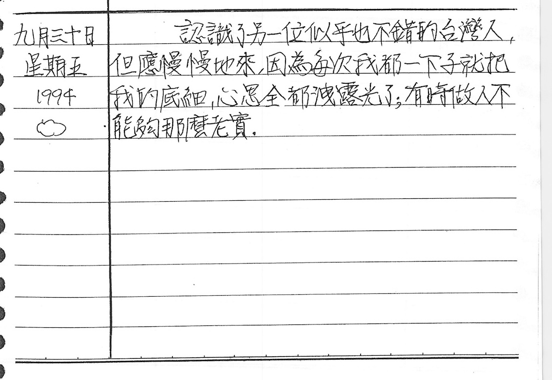 以下是30年前的今天(1994年9月30日)當時17歲的我所親筆寫下的日記:
