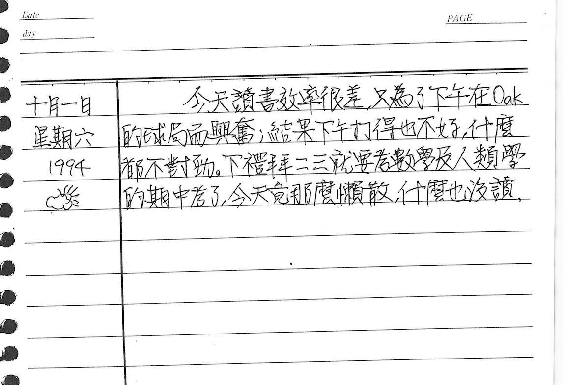 以下是30年前的今天(1994年10月1日)當時17歲的我所親筆寫下的日記: