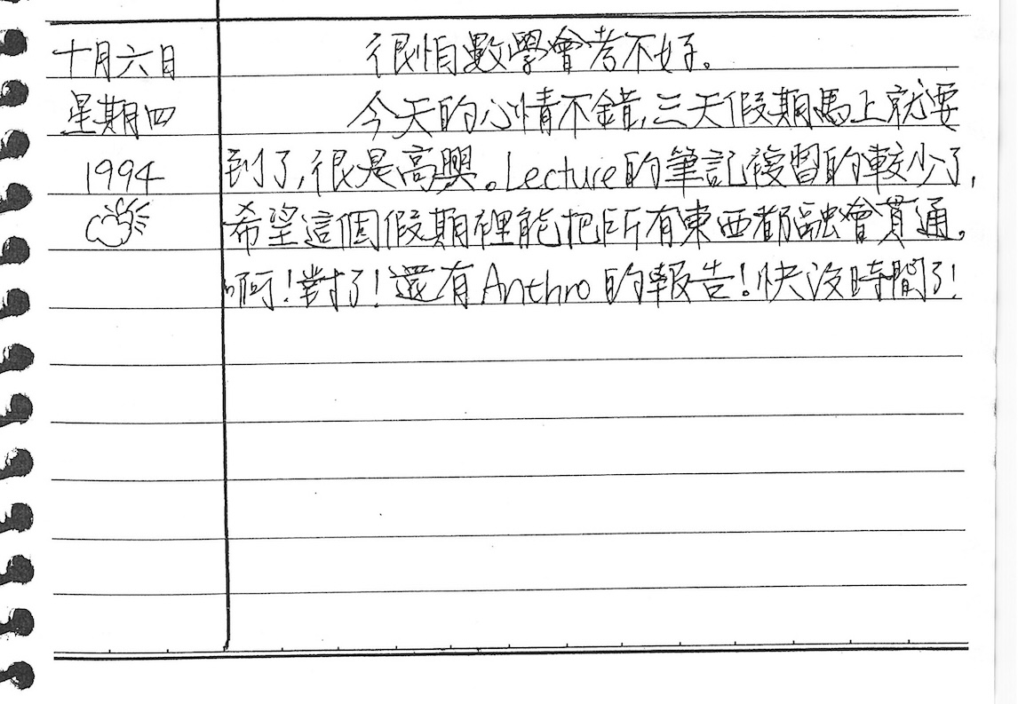 以下是30年前的今天(1994年10月6日)當時17歲的我所親筆寫下的日記: