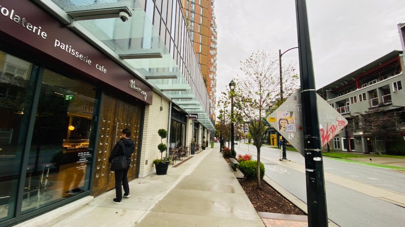 我們來到Thierry,這是上次在西溫豪宅一樓的咖啡廳,廁所及豪奢裝潢就像以前南港住家一樓,廁所播音樂、毛巾,真的像。今天載弟弟來見朋友,我們也先坐進另一家Thierry,也是同樣風格,店裡不亮,燈光卻是小而現代型的聚光燈,蠻適合今天這種溫哥華標準陰雨天。