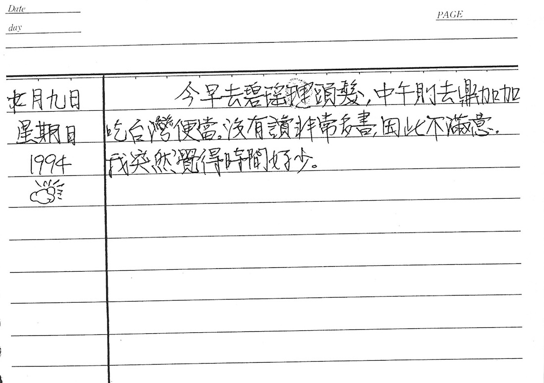 以下是30年前的今天(1994年10月9日)當時17歲的我所親筆寫下的日記: