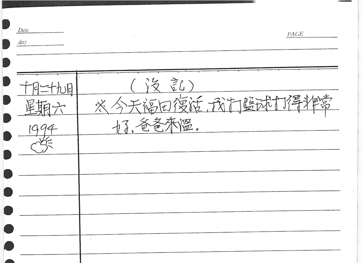 以下是30年前的今天(1994年10月29日)當時17歲的我所親筆寫下的日記: