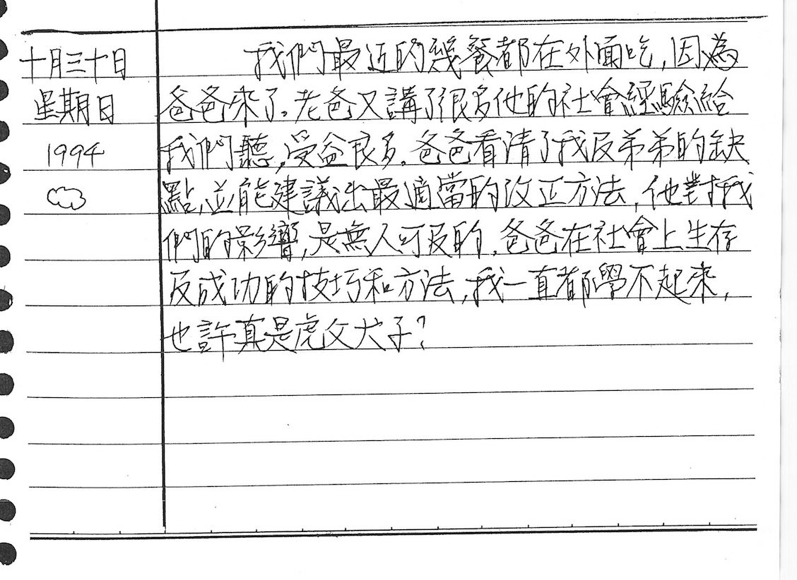 以下是30年前的今天(1994年10月30日)當時17歲的我所親筆寫下的日記: