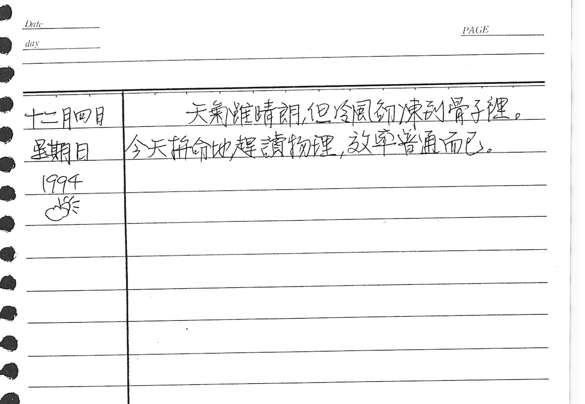以下是30年前的今天(1994年12月4日)當時17歲的我所親筆寫下的日記: