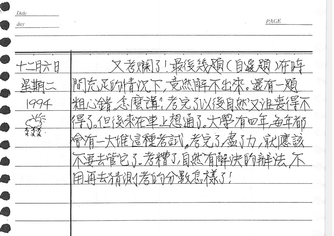 以下是30年前的今天(1994年12月6日)當時17歲的我所親筆寫下的日記: