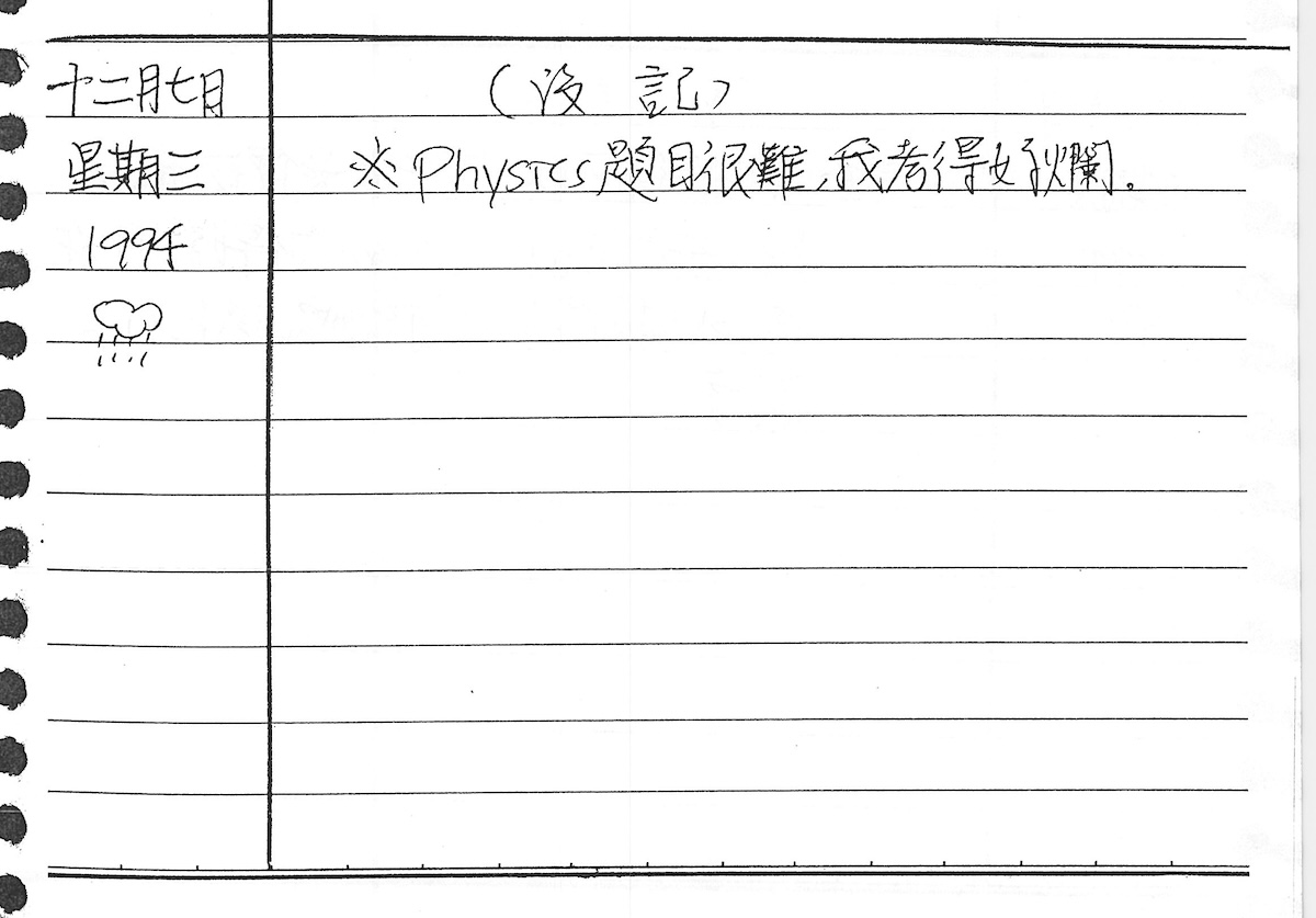 這天,開始連續期末考,但我太沮喪,寫不出日記,我只說,Physics考太爛了!