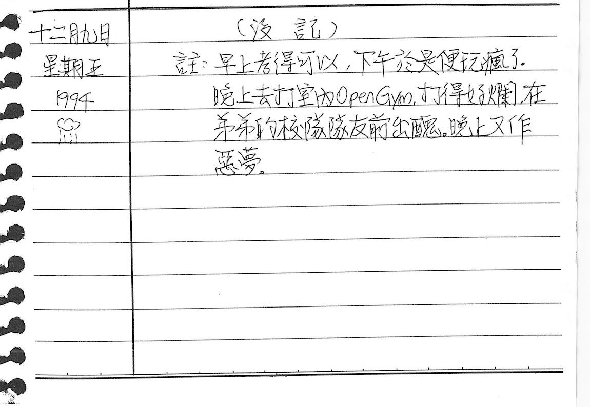 以下是30年前的今天(1994年12月9日)當時17歲的我所親筆寫下的日記: