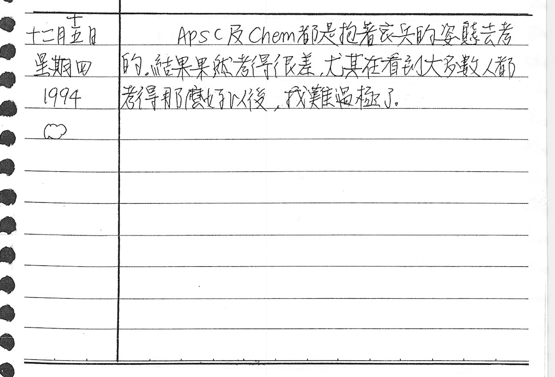 以下是30年前的今天(1994年12月15日)當時17歲的我所親筆寫下的日記:
