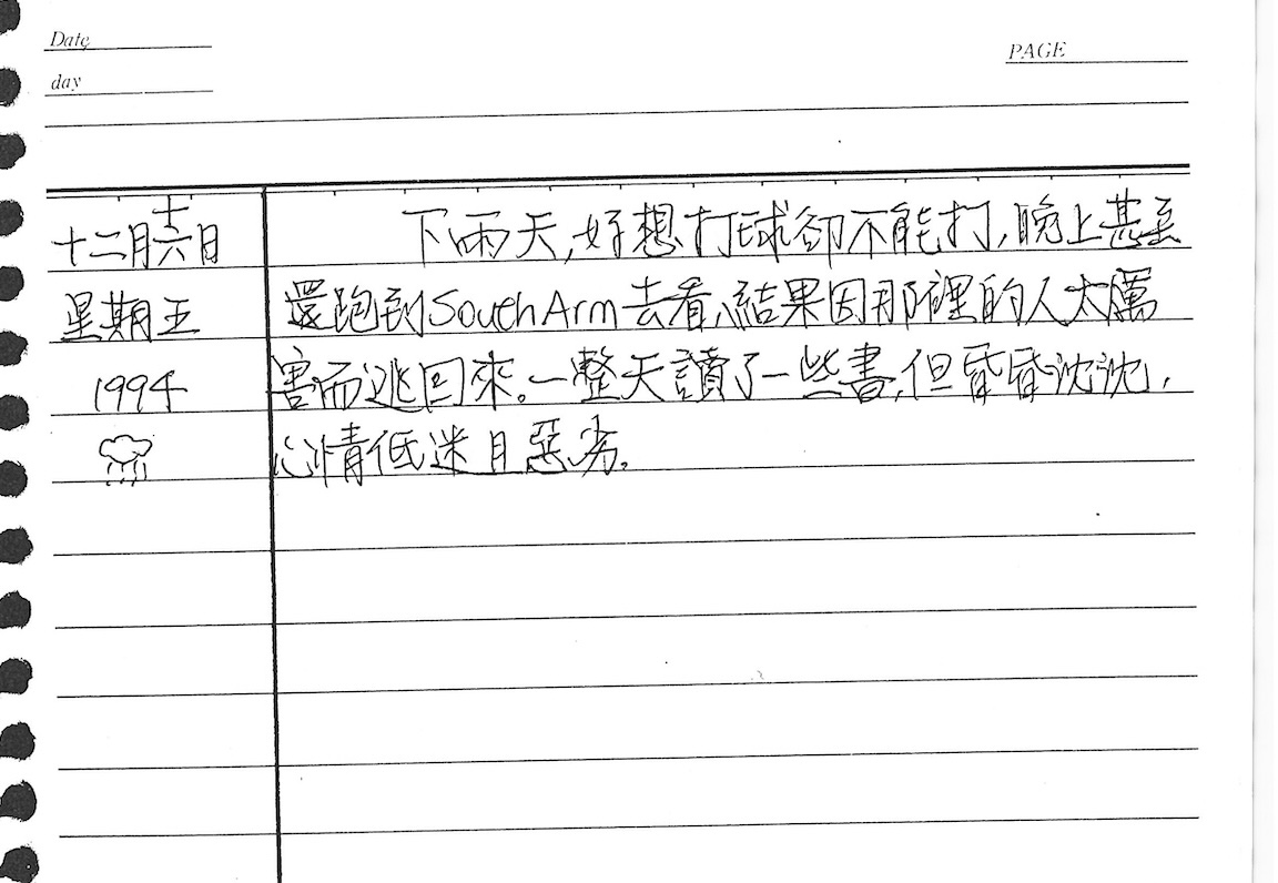 以下是30年前的今天(1994年12月16日)當時18歲的我所親筆寫下的日記: