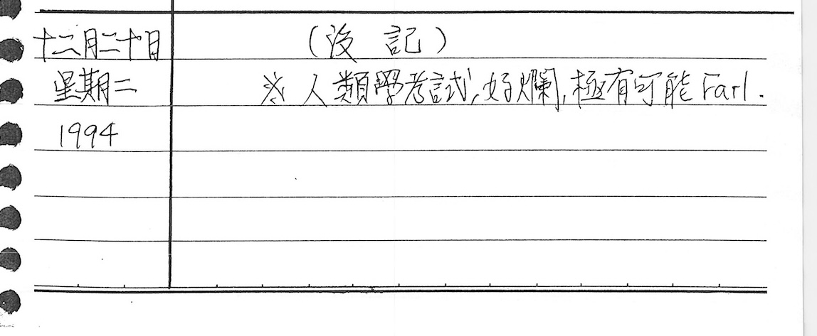 以下是30年前的今天(1994年12月20日)當時18歲的我所親筆寫下的日記: