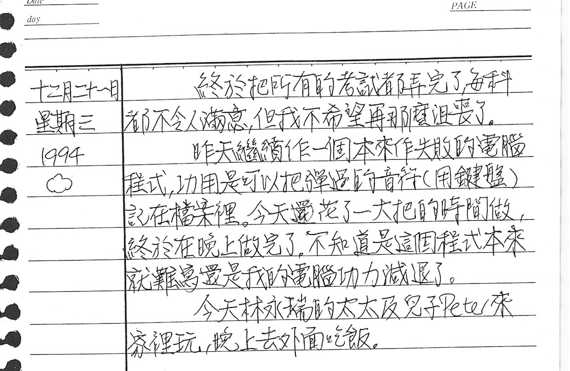 以下是30年前的今天(1994年12月21日)當時18歲的我所親筆寫下的日記: