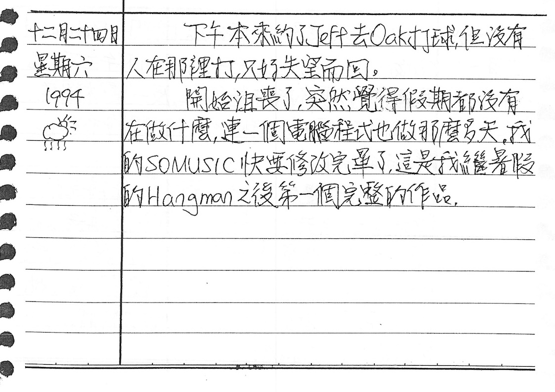 以下是30年前的今天(1994年12月24日)當時18歲的我所親筆寫下的日記: